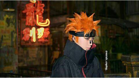 Pain berjumlah 6 orang yang dikendalikan oleh Nagato untuk menyerang desa Konoha, dalam cosplay ini merukan Pain terkuat namun berhasil dikalahkan oleh Naruto. Pain adalah Yahiko yang dibangkitkan oleh Nagato dengan sifat yang berbeda dari aslinya dulu.