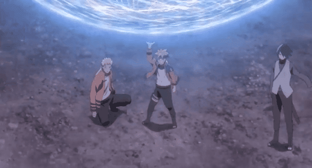 Dan saat terakhir pertarungan Boruto membuat rasengan kecil lagi, namun di perbesar dengan Naruto, sehingga menciptakan rasengan yang sangat besar, sehingga bisa mengalahkan Bijuu dama yag dikeluarkan oleh rinnegan yang berada ditangan Momoshiki. Dan Momoshiki pun lenyap saat terkena ransengan tersebut.Sumbet refrensi : otaku-indo